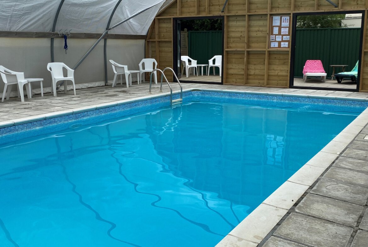 Swimming Pool (9 x 4.5m) - An outdoor heated swimming pool enclosed under a dome supported on a steel frame structure.